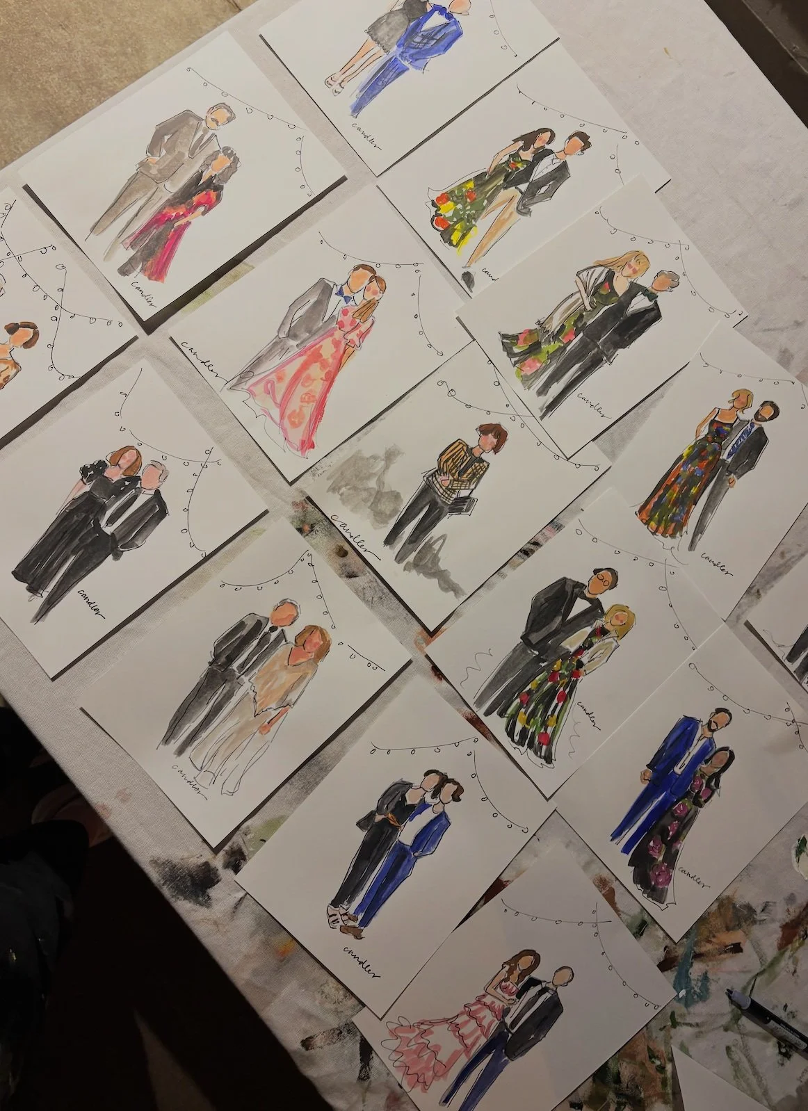 Whether I’m painting your first dance in real time, sketching sweet guest portraits, or creating something for your home, my heart is always rooted in capturing moments that matter — the ones that are quiet, fleeting, and full of meaning. I’m endlessly inspired by blooming flowers, soft light through windows, the magic of a wedding day, and the ordinary details that often go unnoticed but hold the deepest beauty.